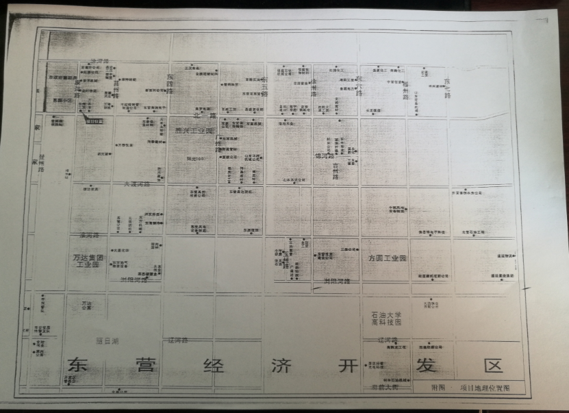 本項目廠區(qū)位于東營市經濟開發(fā)區(qū)北一路和康洋路交匯處。西鄰康洋路,東側與東營市萬源清環(huán)保有限責任公司共用圍墻,廠區(qū)南側約15m為北一路,北側為東營金葉物流有限公司(屬中國煙草公司東營分公司倉庫,火災類別為丙類)辦公樓,距離約為70m。 |
